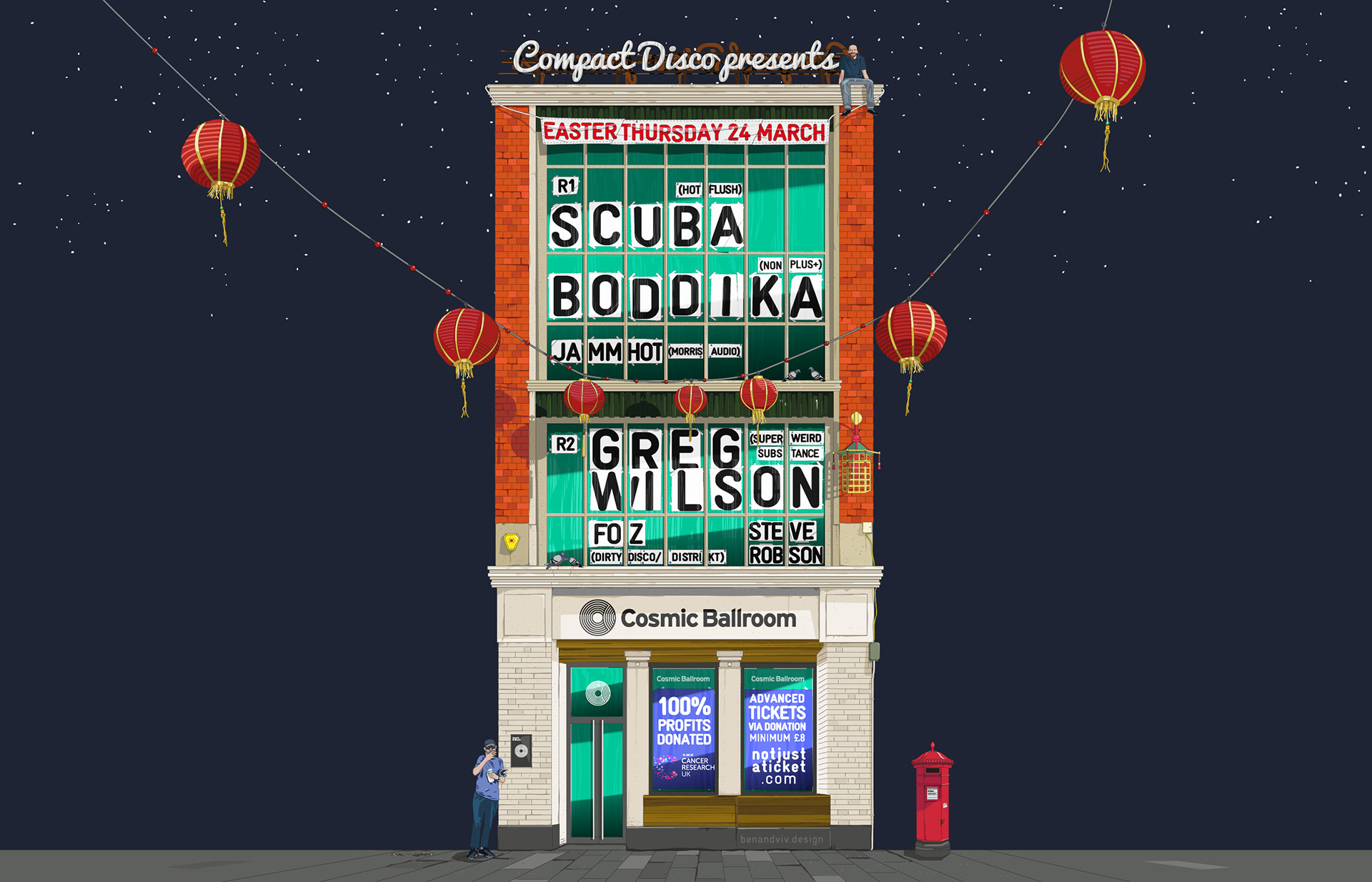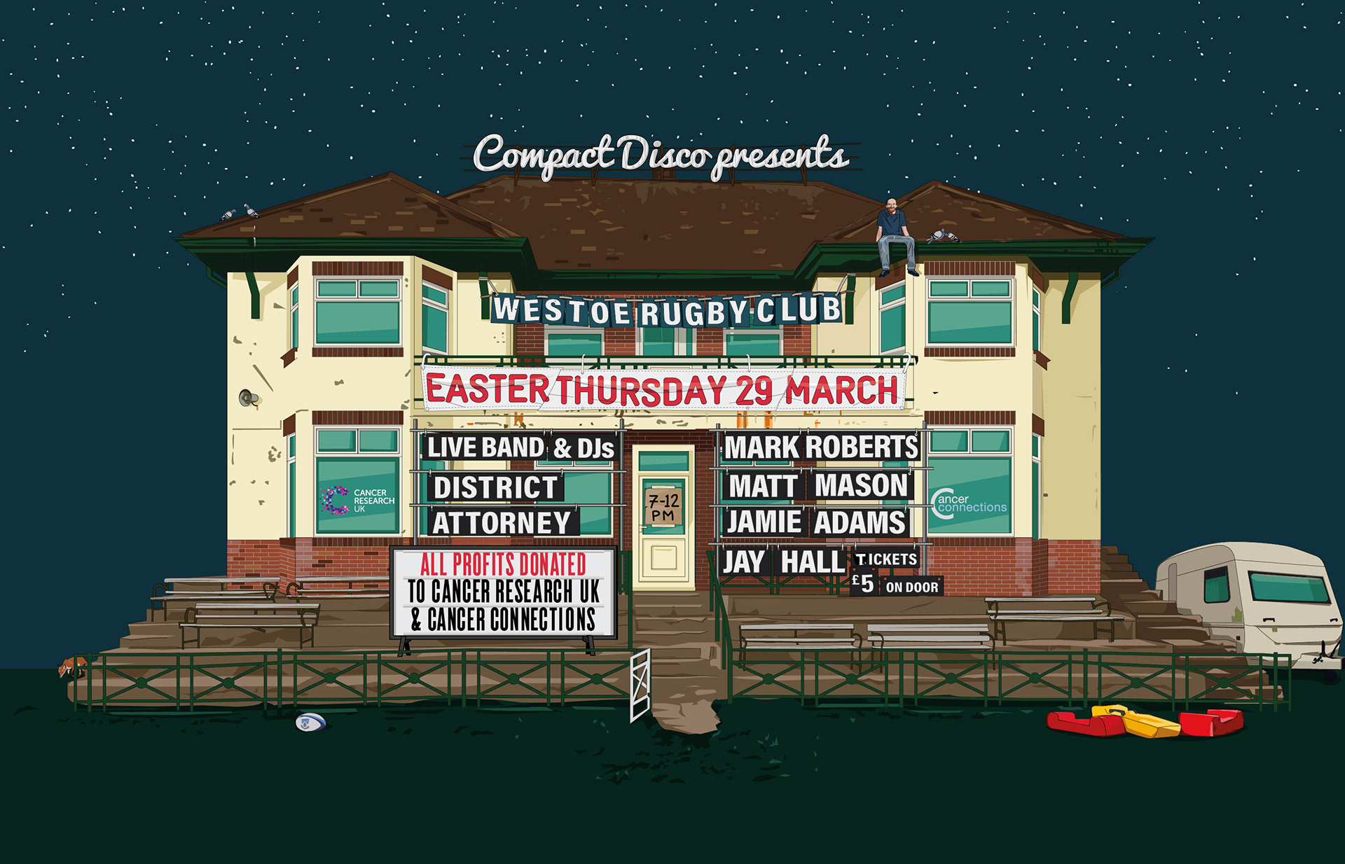 Our 2016 and 2017 illustrations for Compact Disco's Easter get-together in memory of our good friend Steven Robson.