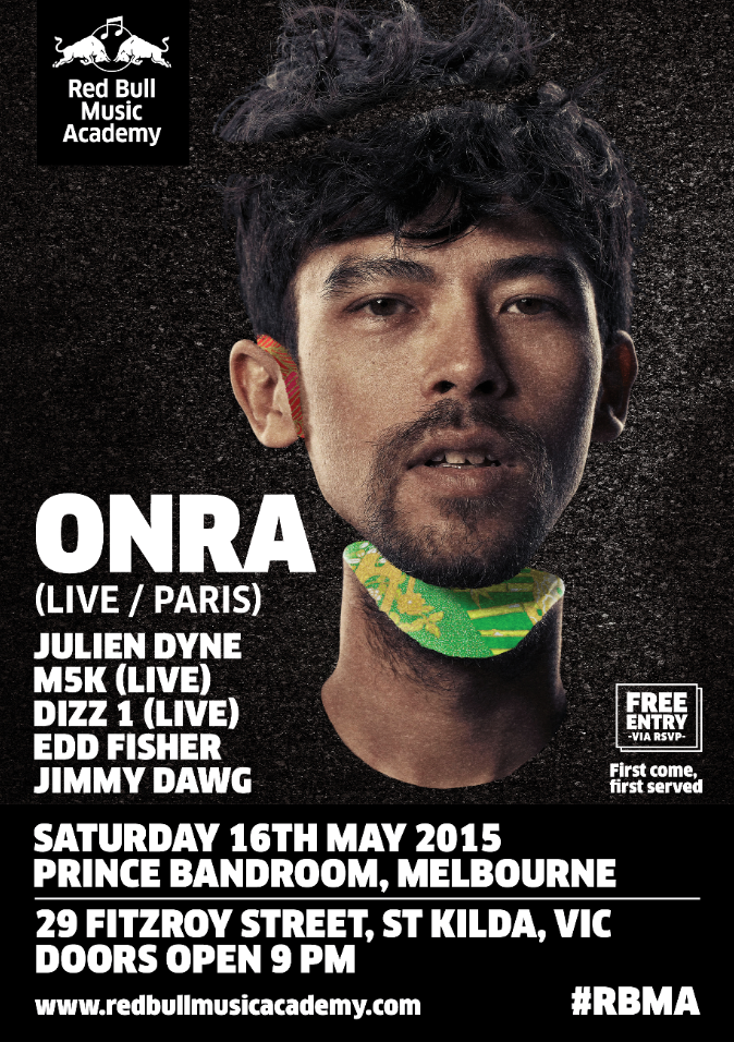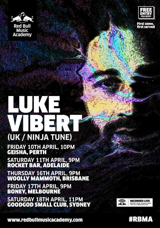 Artwork for RBMA's 2015 Australia tour featuring acid house legend Luke Vibert, Onra and Kutmah.