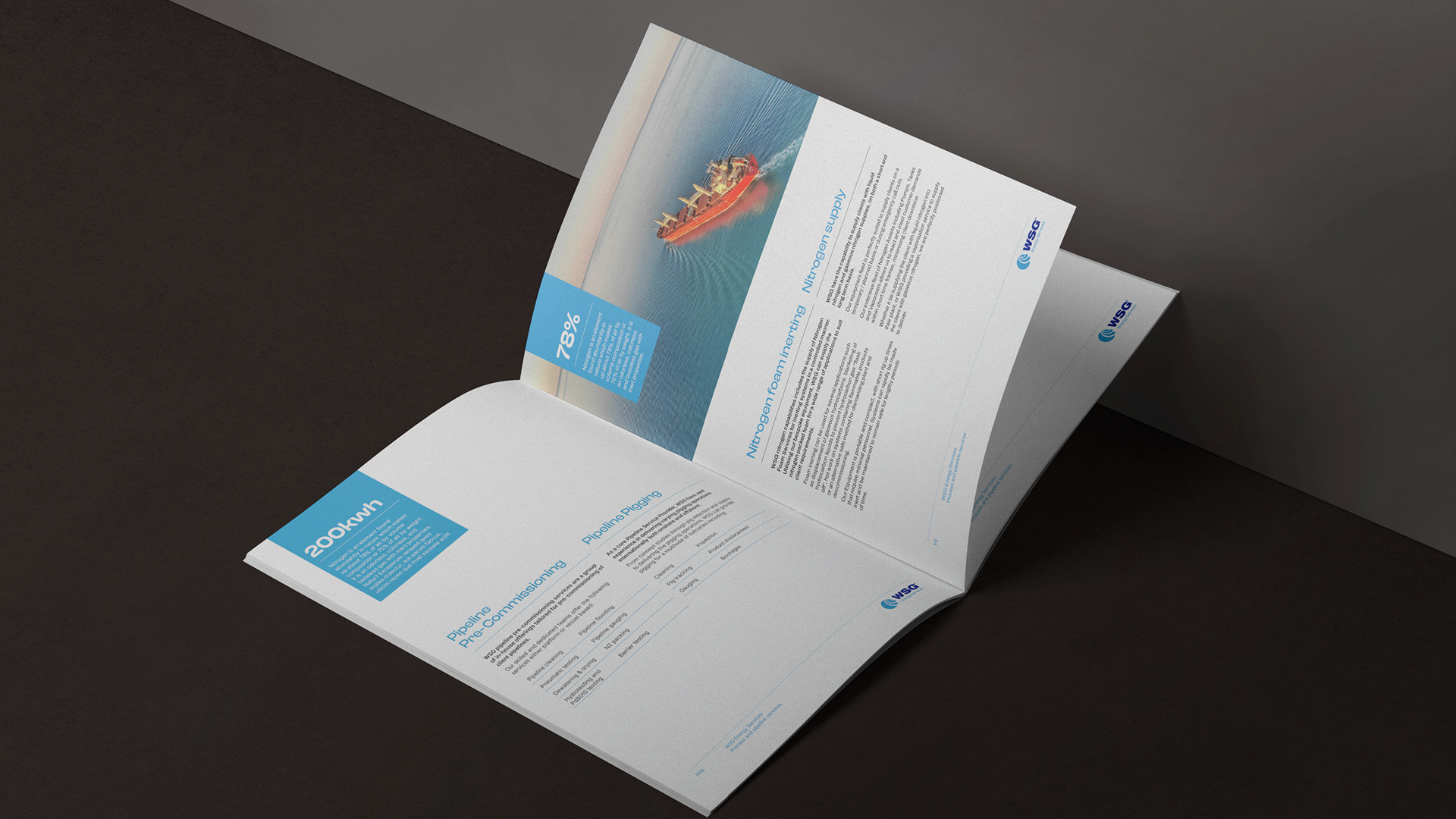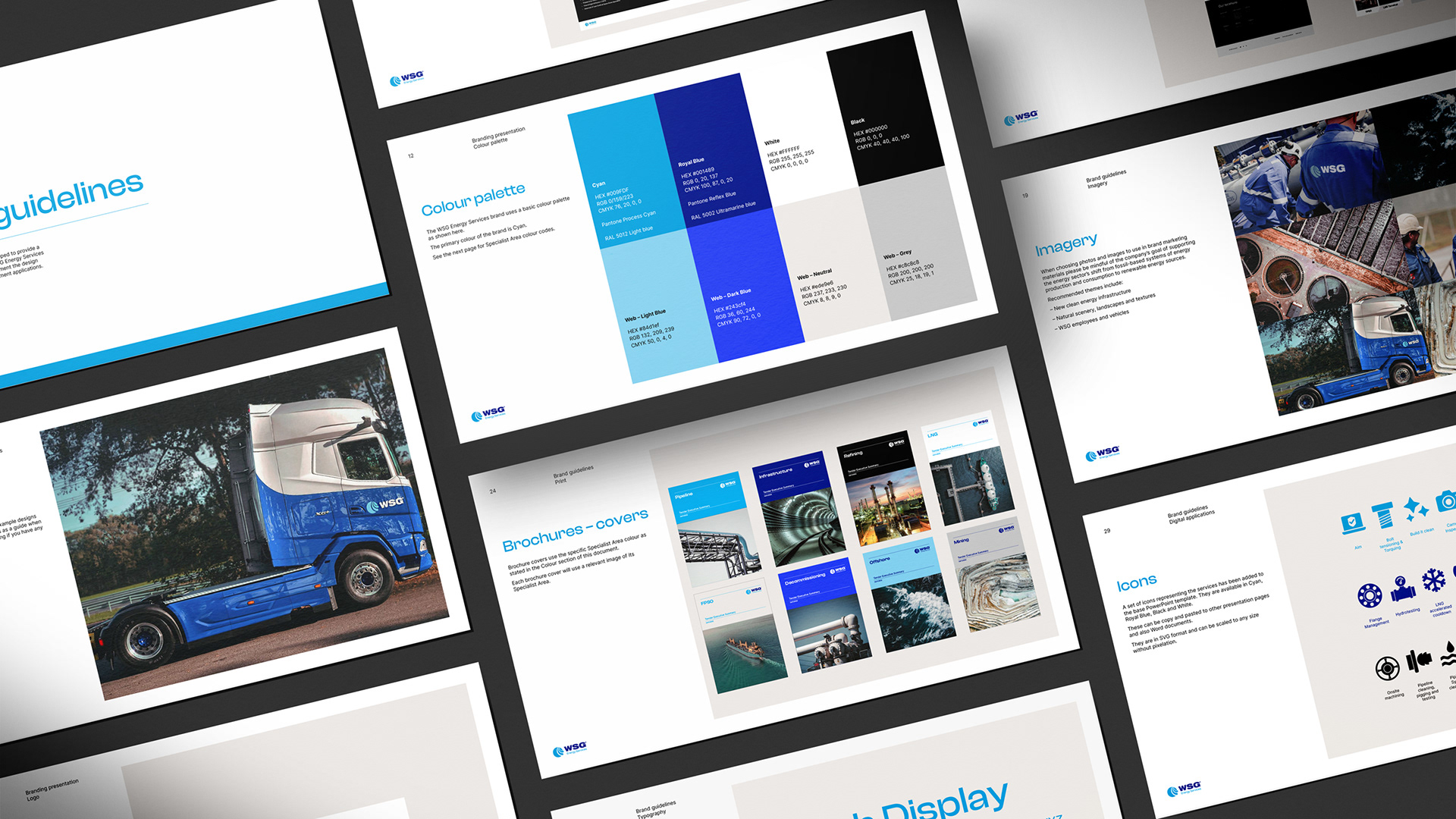 When WSG shifted its focus to sustainable energy, it was the perfect time for Ben and Viv to refresh the brand. They standardised the logos and sub-brands, introduced modern typography and refined the colour palette. They created new design standards for all collateral across print and digital – all brought together in a comprehensive set of brand guidelines.